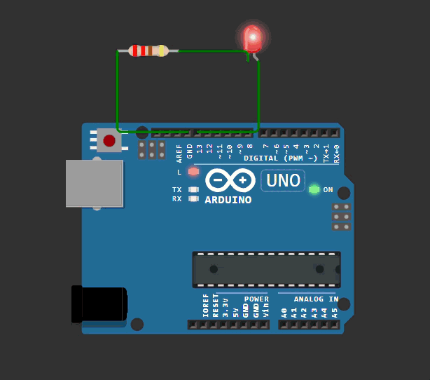In this mini project, the goal is to explore how an Arduino circuit is wired using an online simulator and to see how the board’s pins interact with components such as LEDs and resistors.