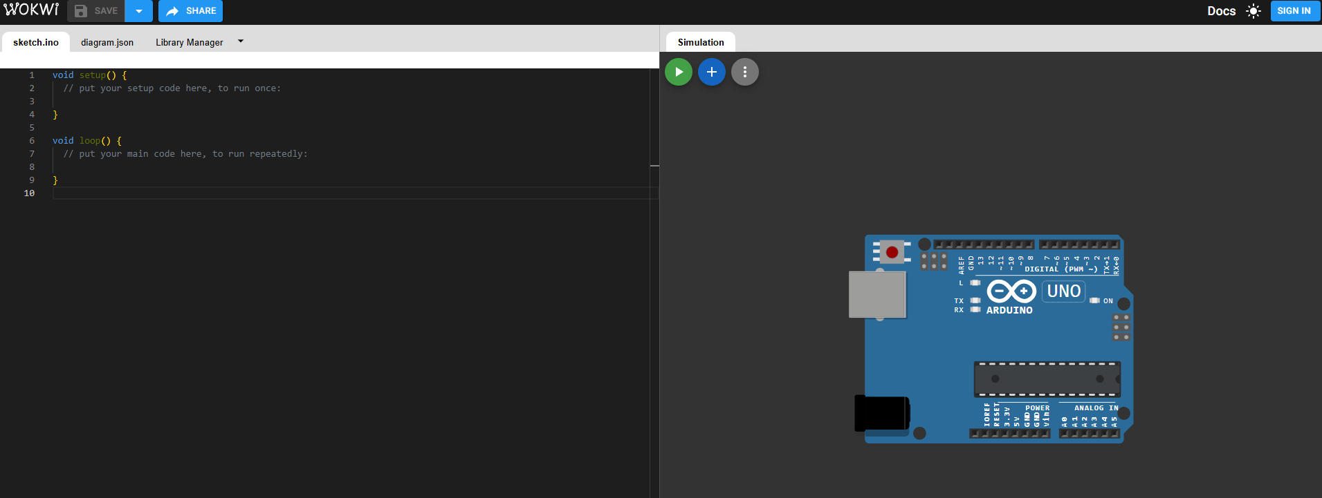 Open the online Arduino simulator: Wokwi Arduino Uno.