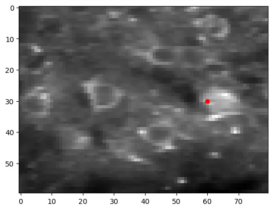 plt.scatter(60, 30, color='r')Exercise: Select a pixel from Cell 2.
