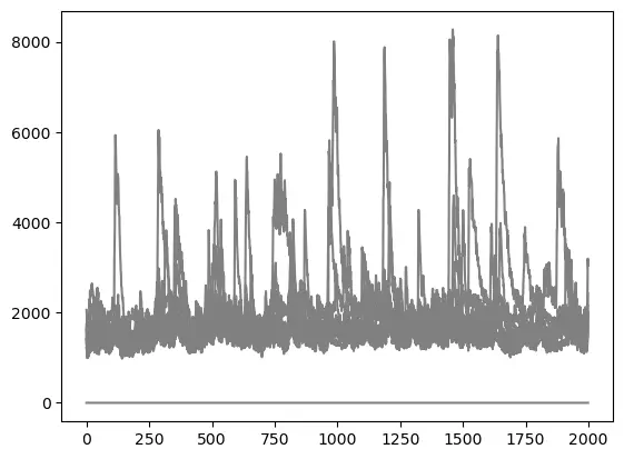 plt.plot(traces[i], color='gray');Section 5: Interpreting and Visualizing Extracted Traces