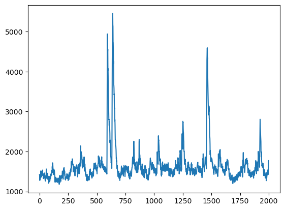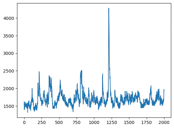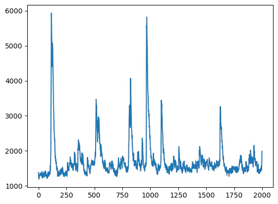 plt.plot(cal_trace)Exercise: Plot calcium trace from 3rd neuron.