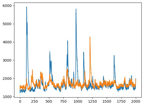 traces = np.zeros((2, 2000)) # Create an empty array to store calcium traces for two ROIs (2 ROIs, 2000 frames)