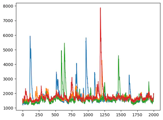 plt.plot(traces[3])It can be tedious to do this manually especially when we have many number of neurons. We can use for-loop to do the same for multiple rois by