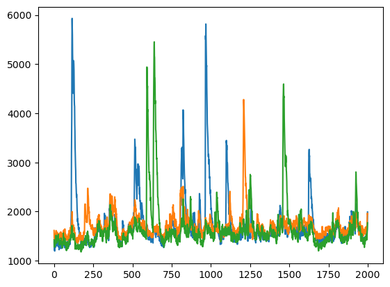 plt.plot(traces[1])Exercise: Use for loop to fill first three rois in their respective locations in traces.