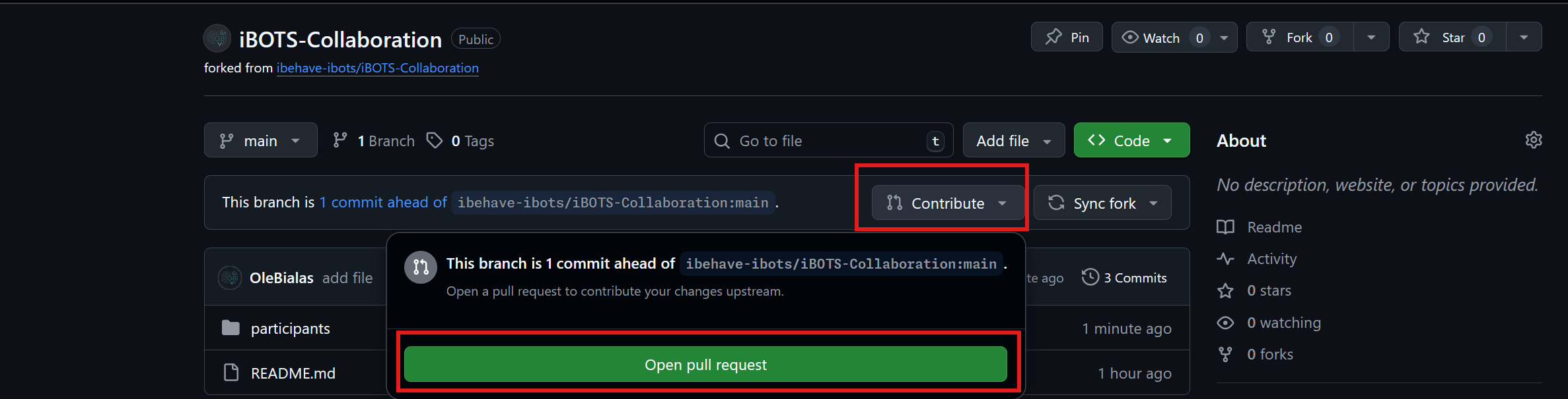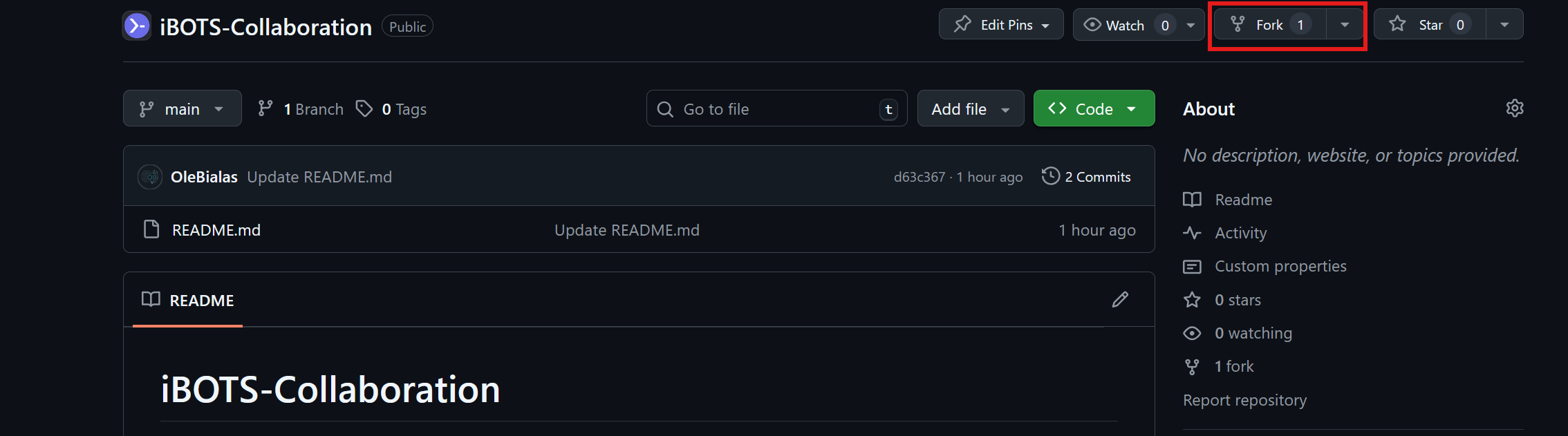 Exercise: On GitHub, fork the repository from this URL: https://github.com/ibehave-ibots/iBOTS-Collaboration.git