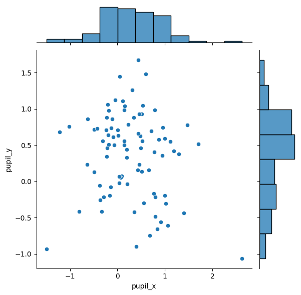 Example: Make a joint plot comparing the pupil_x and pupil_y variables.