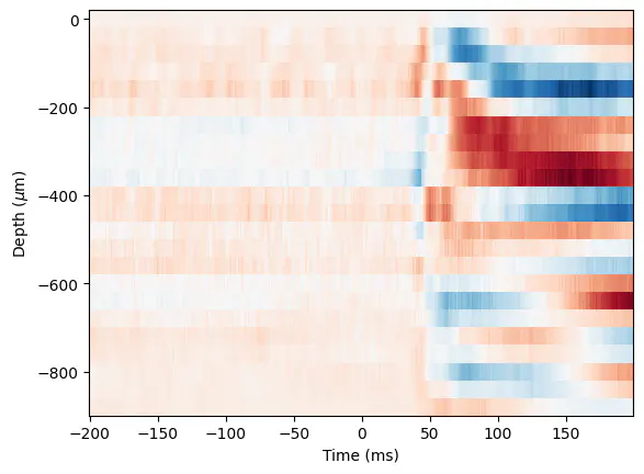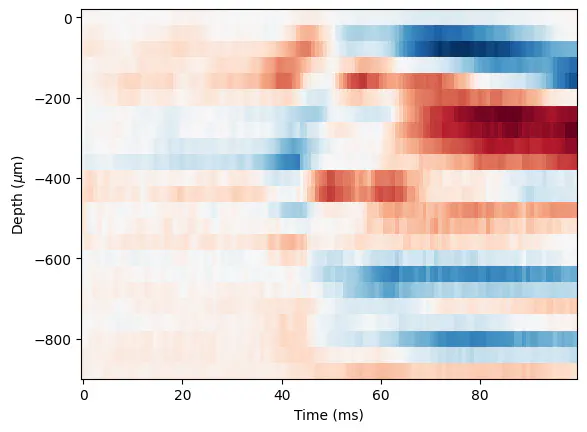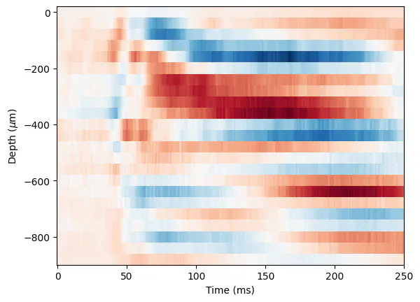 from scipy.stats import wasserstein_distance, pearsonrRun the cell below to get pre-calculated CSD from all trials and select the CSD from the first 100 ms after stimulus onset.