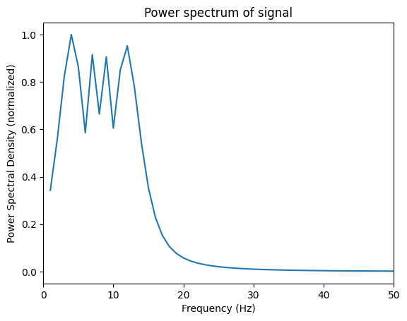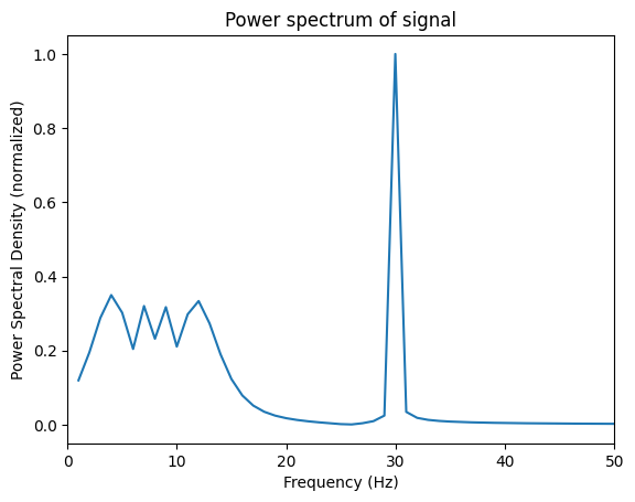plt.ylabel('Power Spectral Density (normalized)')