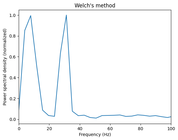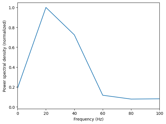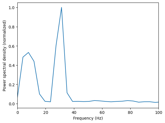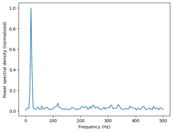plt.ylabel('Power spectral density (normalized)')