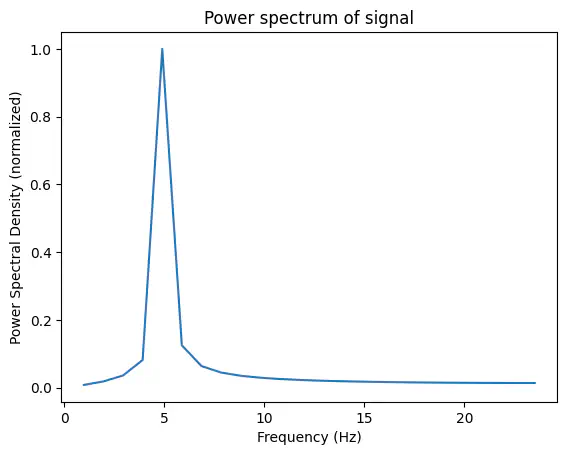 Example: Calculate and plot the power spectrum for the sinusoid signal oscillating at 5 Hz generated below using the Fourier transform.