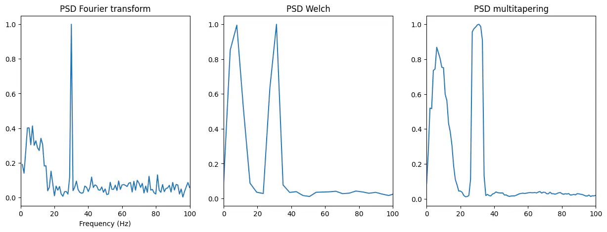 plt.xlim([0,100]);Exercise: Make figure with subplots with the spectrum from each method in a subplot.