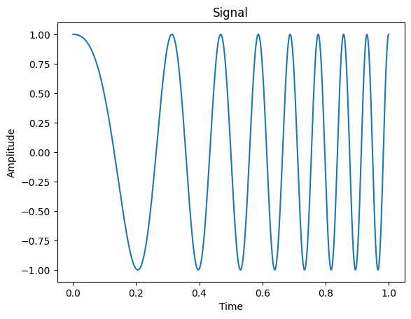 utils.plot_signal(chirp_signal, time_vec)Solution