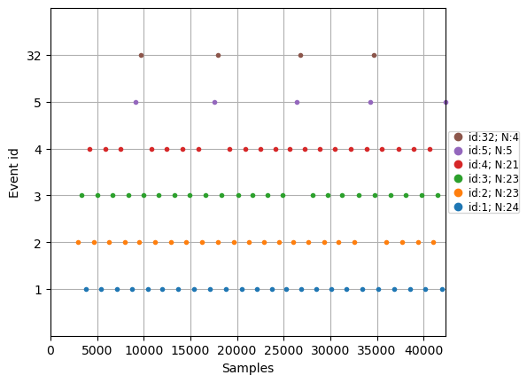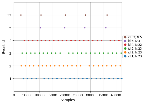 Event IDs: [ 1 2 3 4 5 32]array([[27977, 0, 2],