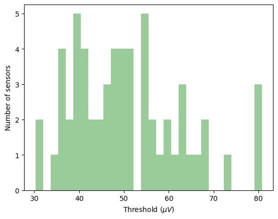 plt.xlabel('Threshold ($\mu V$)')