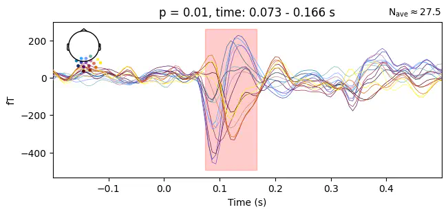 Plot the ERF time courses of a cluster’s channels with the cluster window highlighted |