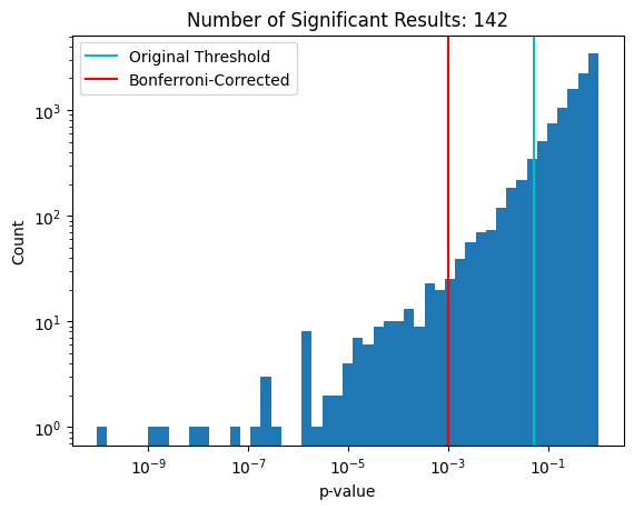 Compute the Bonferroni-corrected threshold manually |