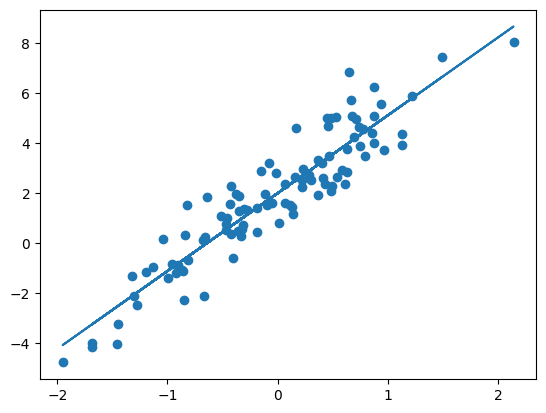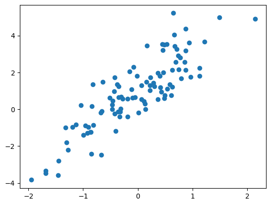 y = 2 + 3*X[:,0] - 1.5*X[:,1] + 0.8*X[:,2] + rng.standard_normal(100)Solution