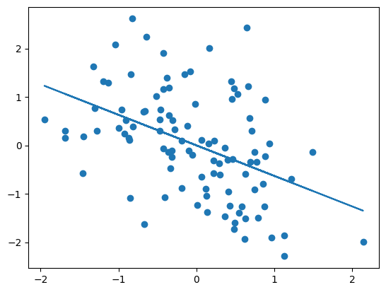 y = -0.75 * X + rng.standard_normal(size=(100, 1))