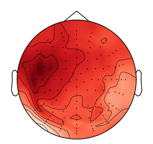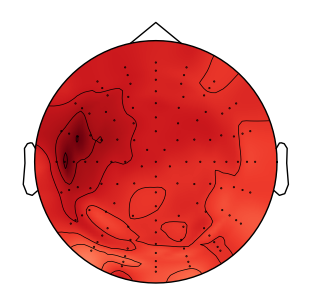 | Plot scores as a topographic map | mne.viz.plot_topomap(score, pos=evokeds[0].info, size=3) |