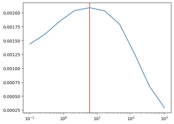 plt.axvline(x=trf.regularization, color="red")Section 3: Interfacing with MNE