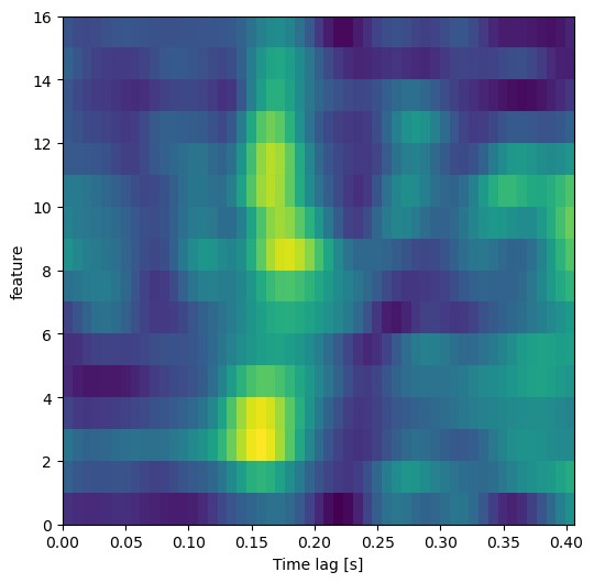trf.train(spectrogram, response, fs, tmin=0, tmax=0.3, regularization=1000)