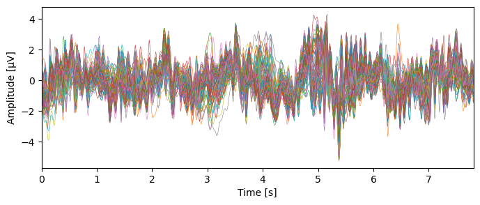 fsnp.uint8(128)Let’s plot a segment of the EEG recording. It’s already preprocessed and ready for analysis.