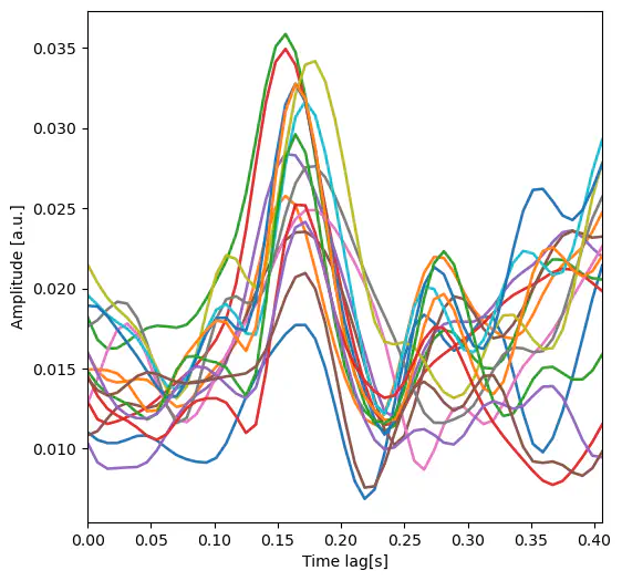 | Train with cross-validation to find the best | scores = trf.train(stimulus, response, fs, tmin=0, tmax=0.4, regularization=lambdas) |