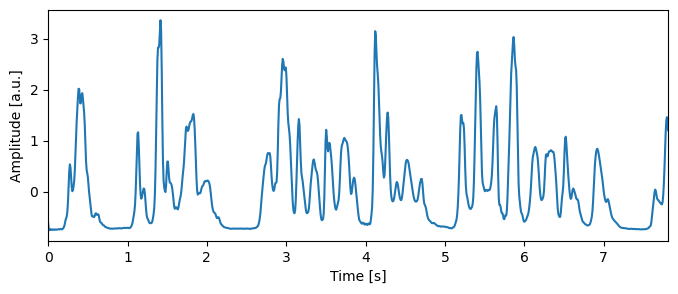 ax.set(xlabel="Time [s]", ylabel="Amplitude [a.u.]", xlim=(t.min(), t.max()));Section 1: Encoding and Decoding Models with mTRFpy