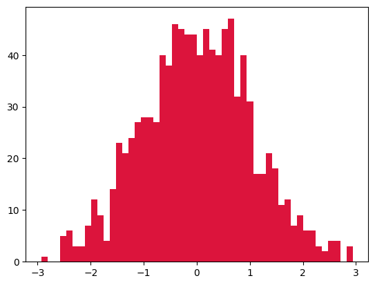 plot_histogram(data, nbins=50, color="crimson")Exercise: Create a function, called compute_stat(), that by default computes the mean, but when the kind argument is specified it can also compute standard deviation or median. Inside this function, make use of the functions you already defined in the previous exercises.