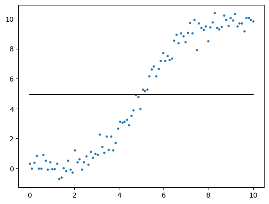 plt.plot(x, y_fit, color="black")Run the cell below to generate the data x, y and plot them.