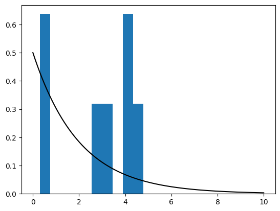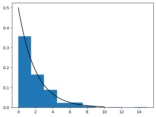 pdf_values = expon.pdf(t, scale=1 / rate)