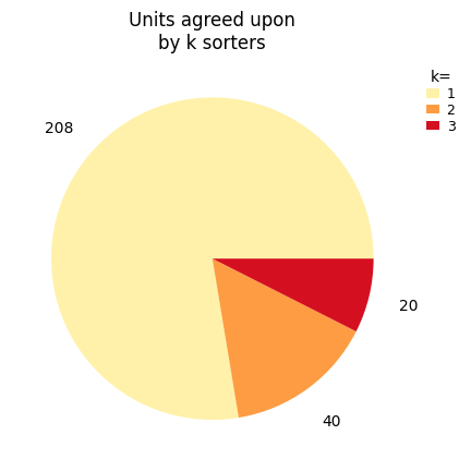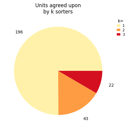 Plot a pie chart summarizing the agreement between multiple sorters. |