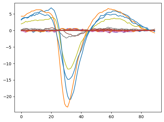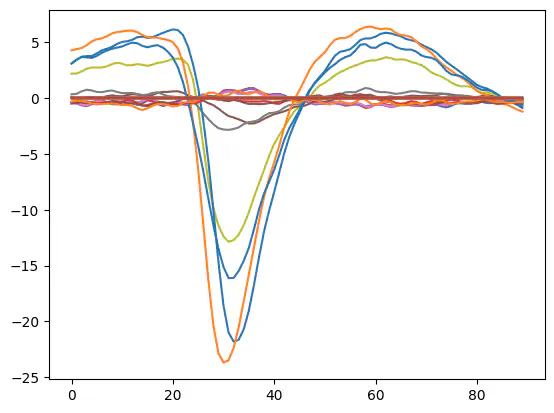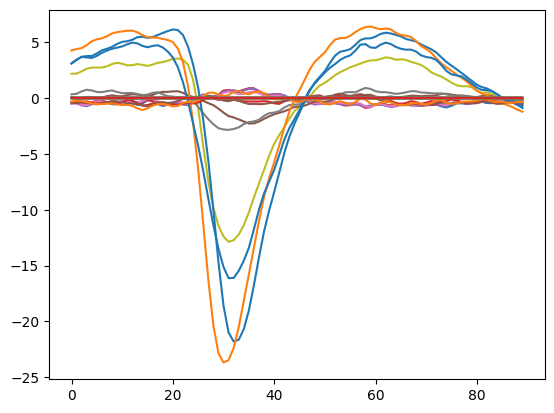 plt.plot(template);Exercise: Compute the "templates" for the extracted "waveforms" using the "median" operator.