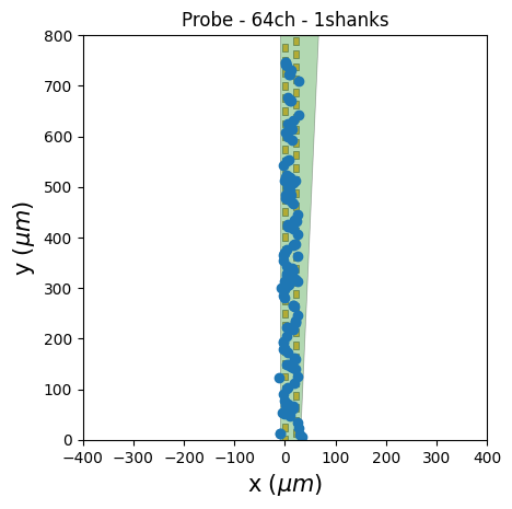 unit_locations.shape(127, 3)Exercise: Plot the probe together with the x and y unit_locations.