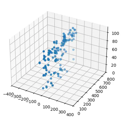 plt.ylim(0, 800)(0.0, 800.0)Example: Create a 3D plot of the x, y and z unit_locations.
