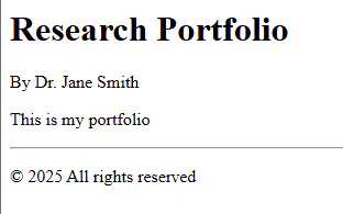 </body>Exercise: Add a horizontal line (<hr>) before the footer.