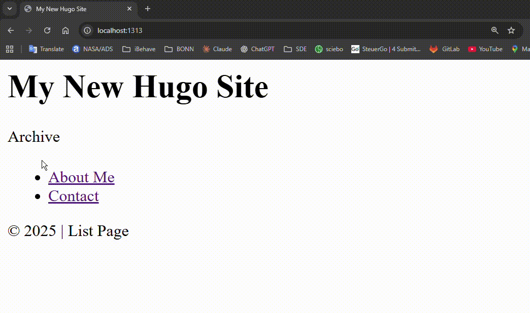I am a web developer specializing in Hugo static sites. I have been building websites for 5 years.Exercise: Create contact.md with content and verify single.html applies to it.