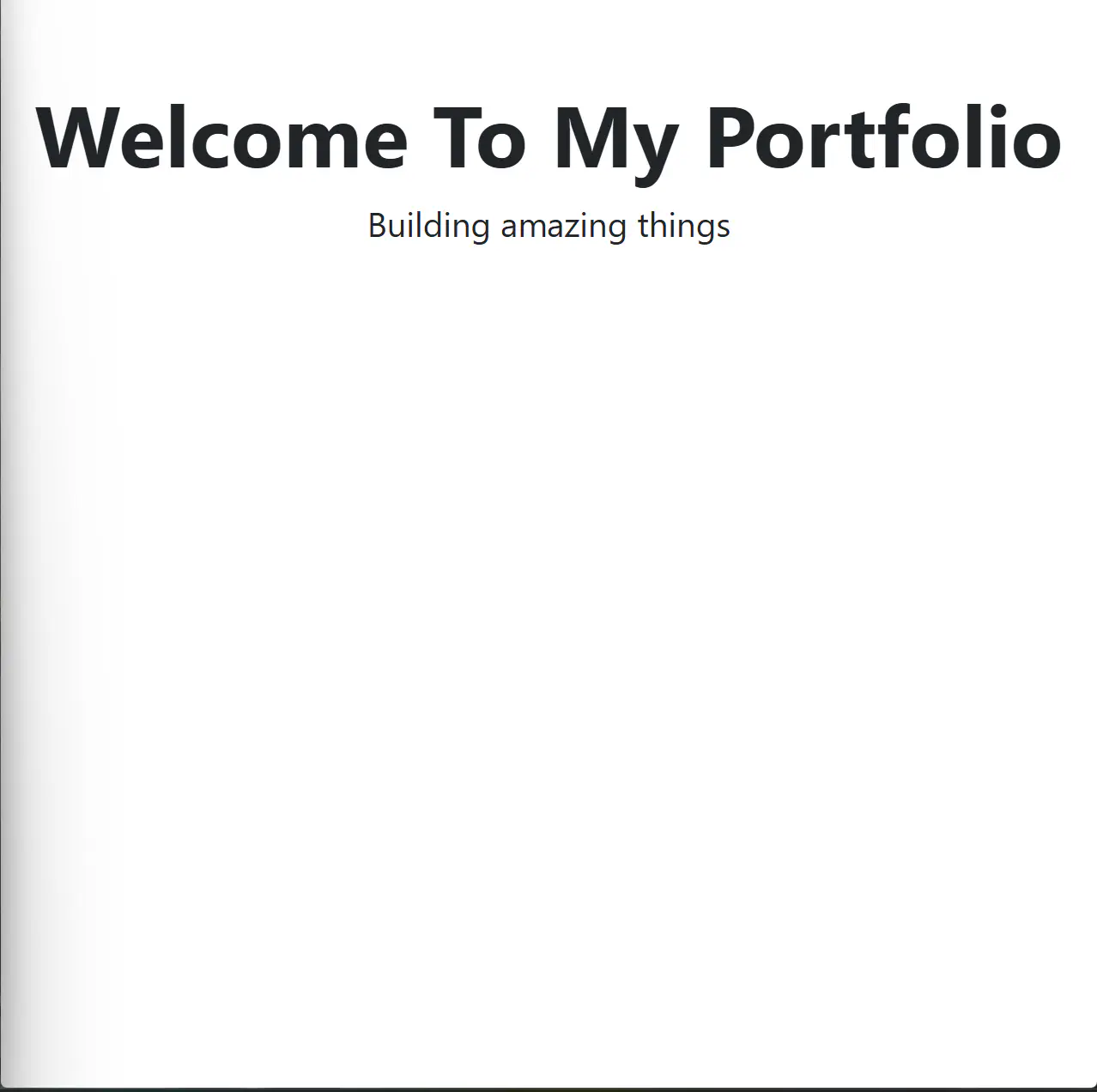 <h1>Welcome to My Portfolio</h1>Exercise: Add a subheading paragraph below with text “Building amazing things”.